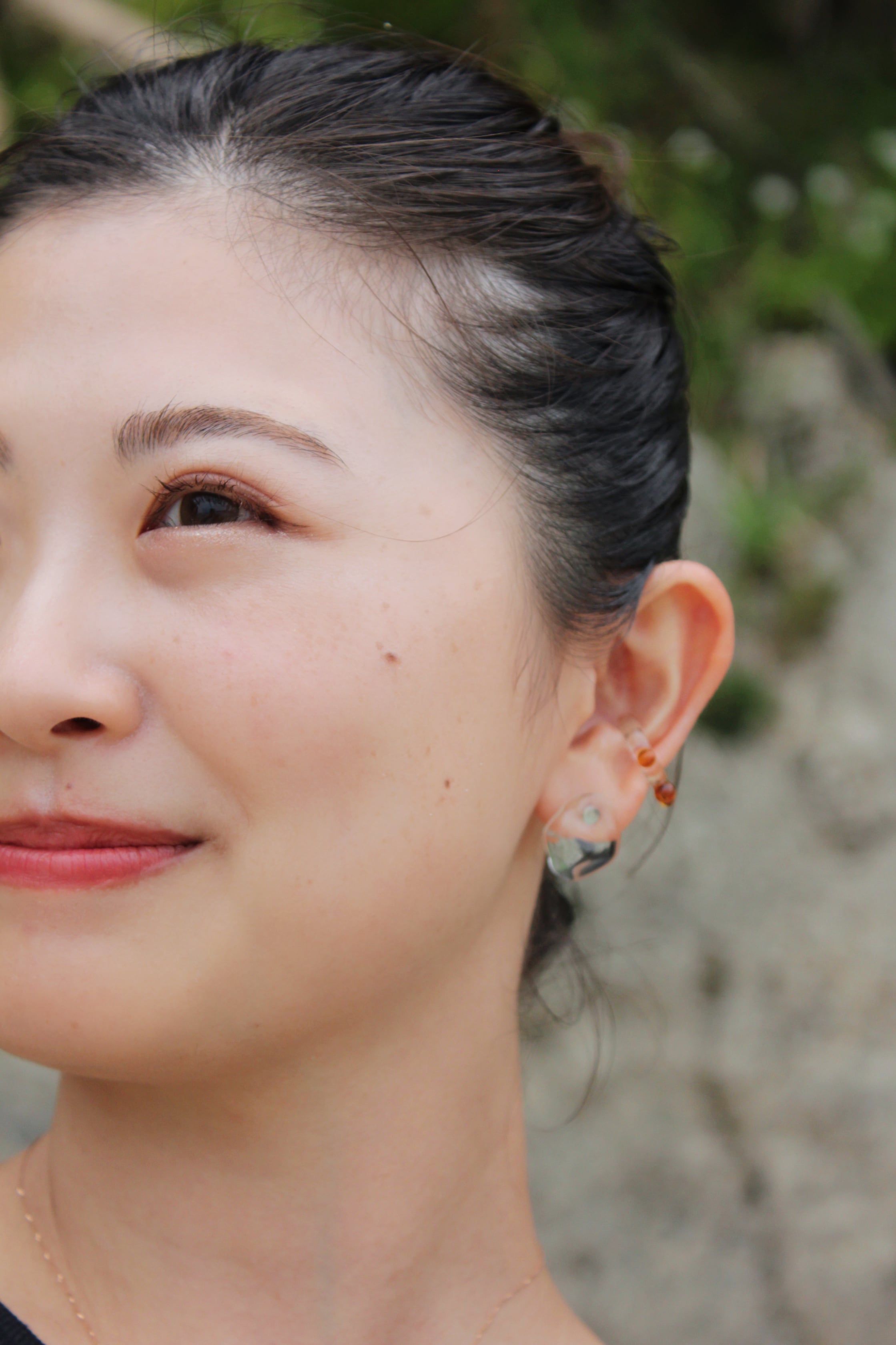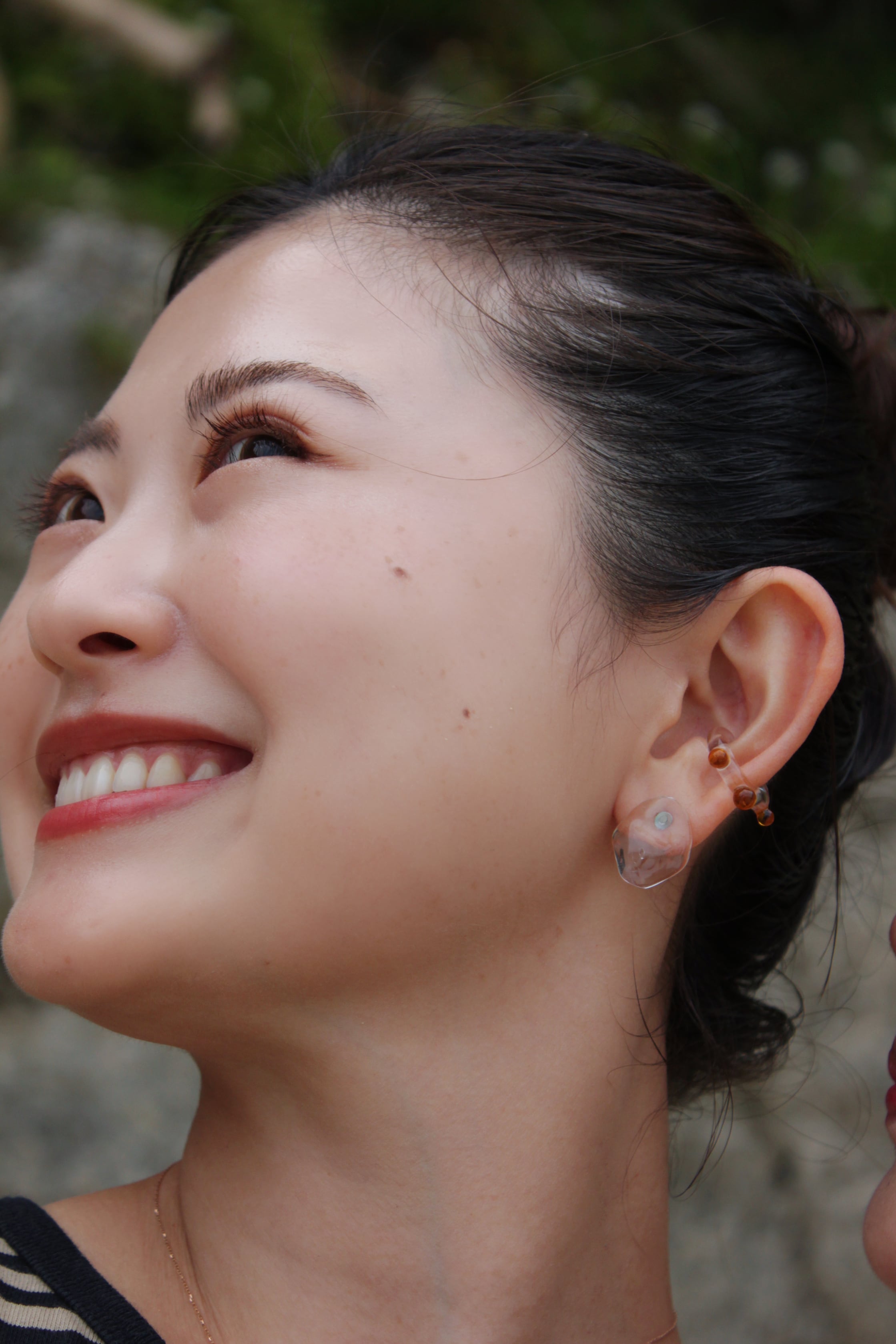 本作品《ice》は、氷の美しさをガラスに閉じ込めたピアスです。